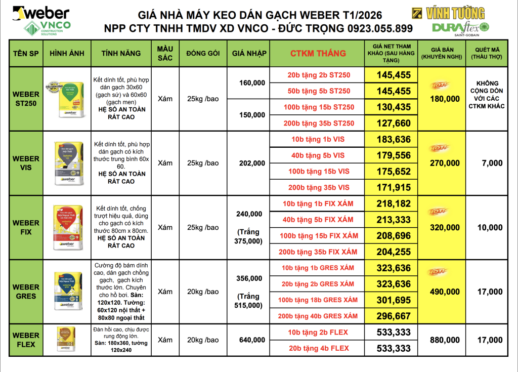 BÁO GIÁ THÁNG 01/2026