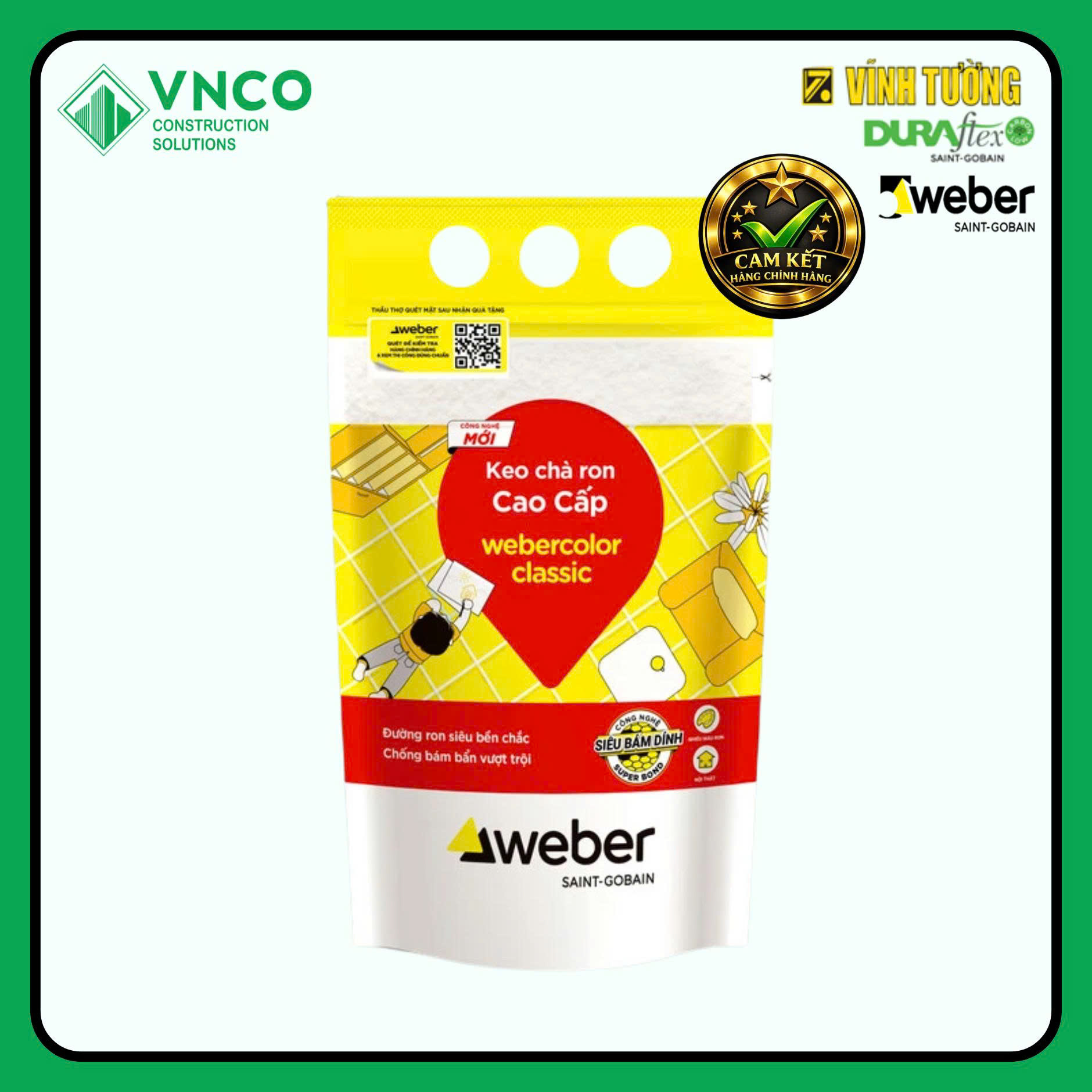 Weber Color Classic là dòng keo (vữa) chà ron cao cấp với nhiều màu sắc đa dạng, chuyên dụng cho mọi loại gạch men, sứ, gạch tàu, gạch khảm, mosaic và đá tự nhiên. Sản phẩm hoàn thiện đường ron đều đẹp, tăng tính thẩm mỹ cho công trình nội thất.